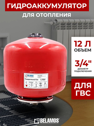 Гидроаккумулятор 12 литров для ГВС / расширительный бак (экспанзомат) вертикальный 3/4" Belamos (Беламос) красный 12RW