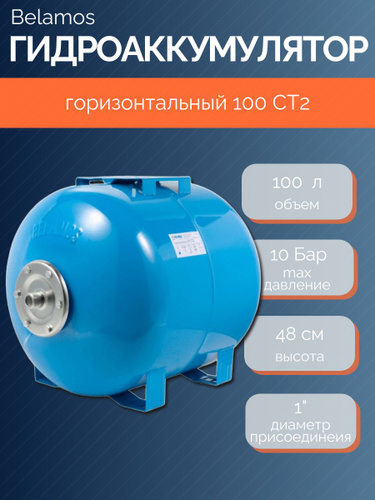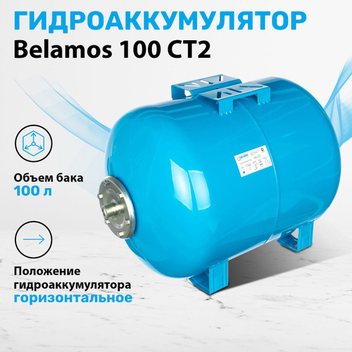 Гидроаккумулятор Belamos (Беламос) 100CT2 100 л горизонтальный, для водоснабжения, дома, дачи, 1"