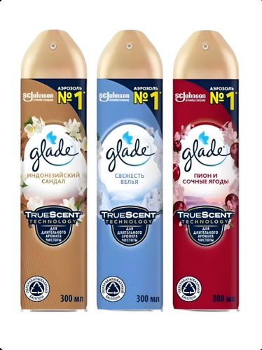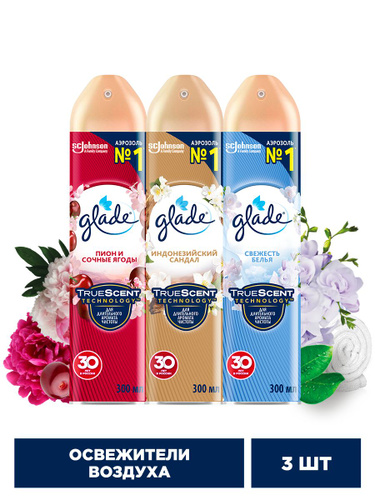 Glade набор освежителей воздуха Пион и сочные ягоды 300 мл + Индонезийский сандал 300 мл + Свежесть белья 300 мл