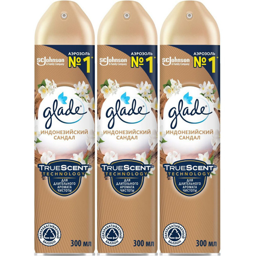Освежитель воздуха Glade Индонезийский сандал 300 мл, набор: 3 штуки