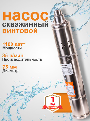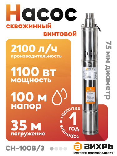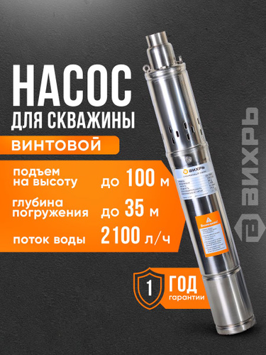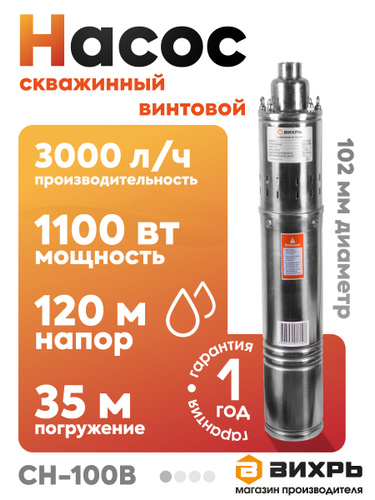 Насос для скважины Винтовой, 2100 л/ч производительность, 100 м напор (Вихрь СН-100B/3)
