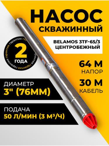 Насос скважинный центробежный Belamos 3TF-65/3, 50 л/мин, напор 64 м, кабель 30 м