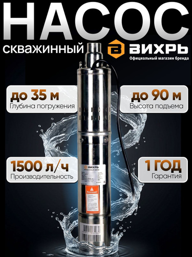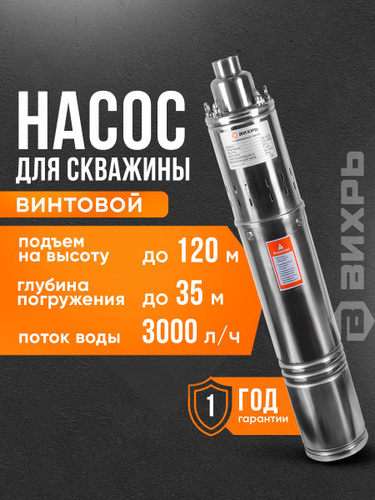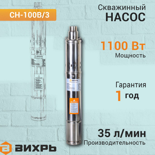 Скважинный насос СН-100B/3 Вихрь, высота подъема 100 м, 35 л/мин