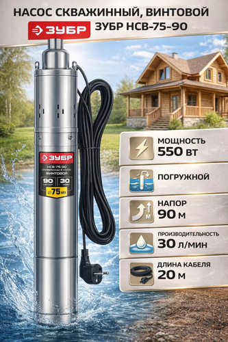 Насос скважиный ЗУБР НСВ-75-90 винтовой, мощность 550 Вт, напор 90 м, производительность 30 л/мин