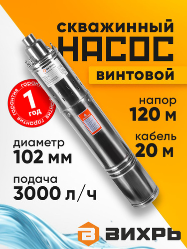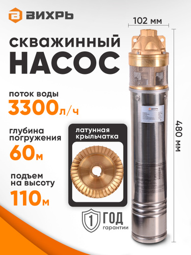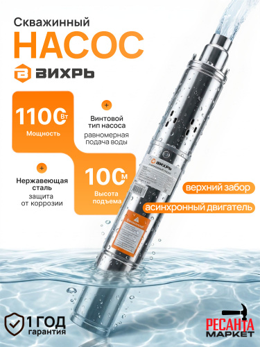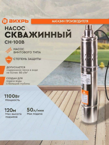Насос для скважины 1100Вт Вихрь, 50л/мин, 120м, верхний забор воды
