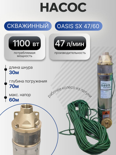 Насос скважинный Oasis SX 47/60 1100 Вт глубинный, вихревой, напор 60 м