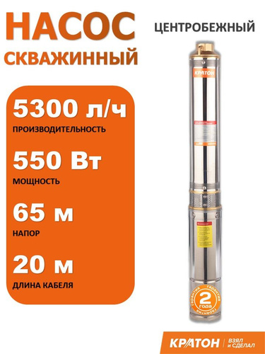 Насос скважинный центробежный Кратон, 550 Вт, диаметр 100 мм, напор 65 м, WWP-95/65