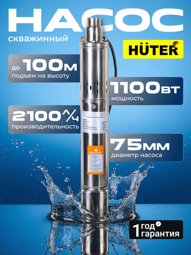 Насос для скважины Huter, 100 м напор. 1100 Вт, диаметр 75 мм. винтовой, BSP 100-35/3