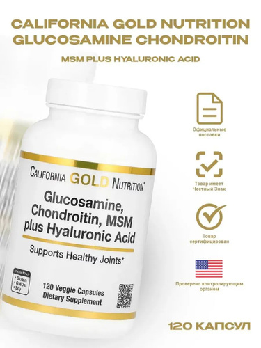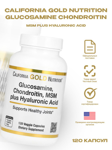 California Gold Nutrition, Глюкозамин, хондроитин и МСМ с гиалуроновой кислотой - 120 растительных капсул