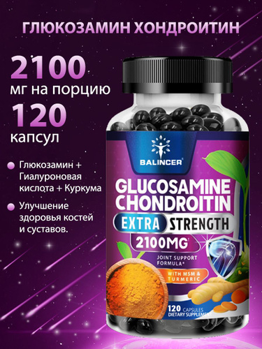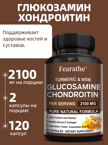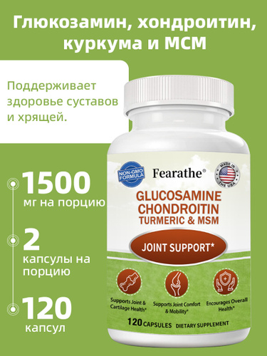 Капсулы с глюкозамином, хондроитином, МСМ и куркумой. Для здоровья костей и суставов. Поддержка. 60/120 капсул.