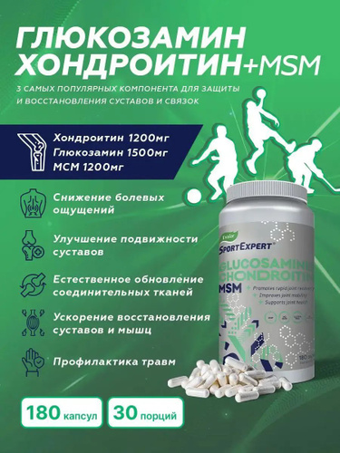 СпортЭксперт Глюкозамин Хондроитин МСМ, капс. №180 (SportExpert Эвалар Glucosamine Chondroitin MSM)