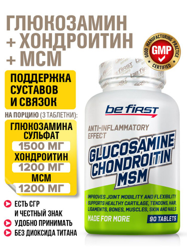 Добавка для суставов и связок Be First Glucosamine Chondroitin MSM (глюкозамин сульфат / хондроитин сульфат / мсм) 90 таблеток