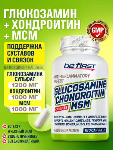 Добавка для суставов и связок Be First Glucosamine Chondroitin MSM (глюкозамин сульфат / хондроитин сульфат / мсм) 120 капсул
