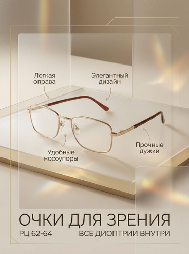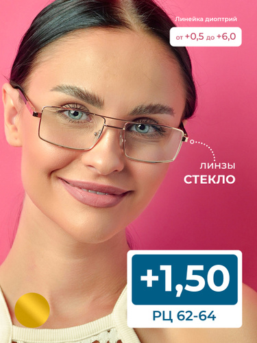 Готовые очки металл с диоптриями (+1.50) МОСТ 123 M1, линза СТЕКЛО, цвет золотой, стигматические, РЦ62-64