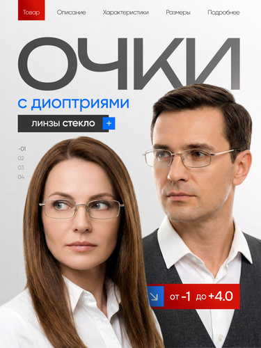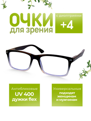 Очки для зрения чтения с диоптриями корригирующие -4 оптические 1 шт.