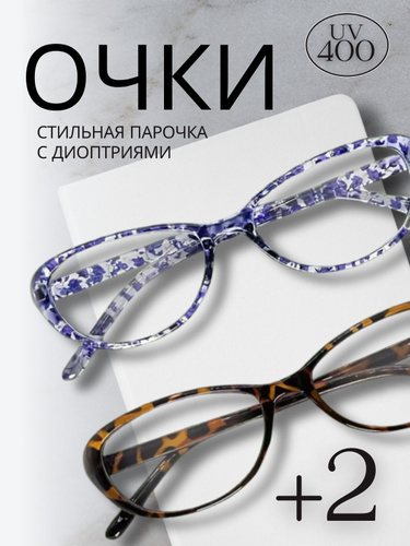 Очки для зрения чтения с диоптриями корригирующие +2 оптические 1 шт.