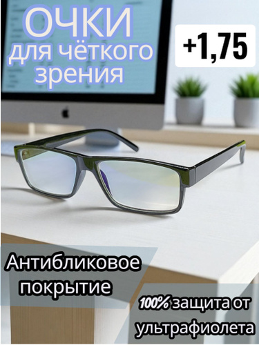 Очки для зрения чтения с диоптриями корригирующие +1,75 оптические 1 шт.