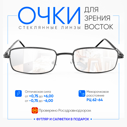Готовые очки для зрения с диоптриями +2.50 ВОСТОК, стеклянные линзы/ корригирующие очки в металлической оправе (футляр+салфетка)