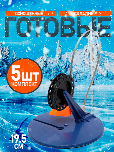 Жерлицы для зимней рыбалки набор 5шт. оснащенные без сумки на подставке(d-200, катушка-85)
