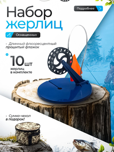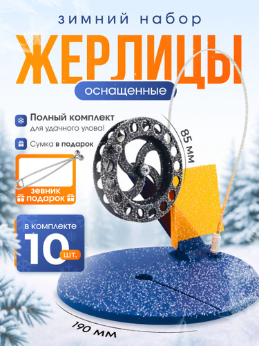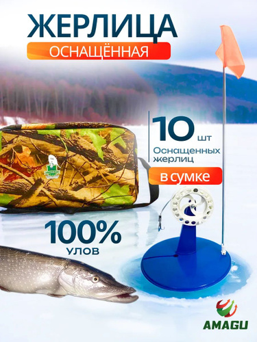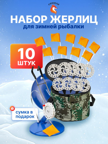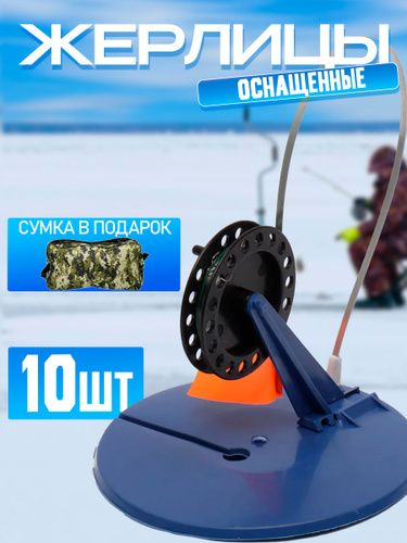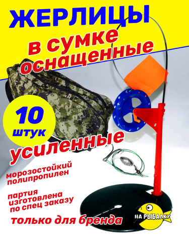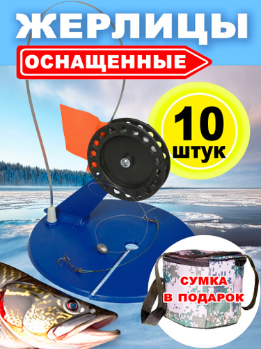 Жерлицы для зимней рыбалки оснащенные, набор 10 штук + сумка в подарок