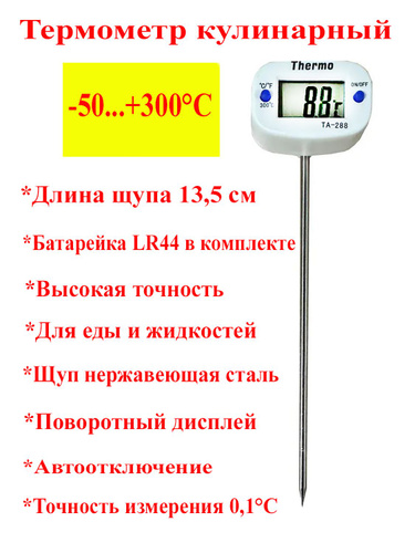 Термометр -50...+300C кулинарный с щупом 13,5 см TA-288 для пищи и жидкостей