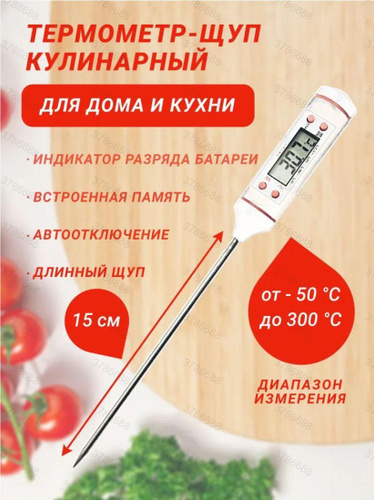 Термометр кулинарный с щупом, термощуп для воска и свечей, градусник для воды и мяса