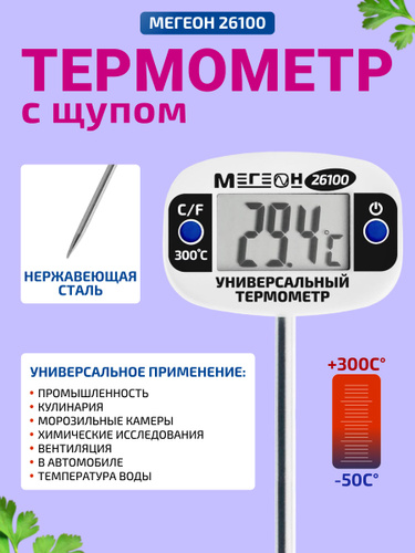 Термометр кулинарный, электронный, термощуп, градусник кулинарный с щупом МЕГЕОН 26100