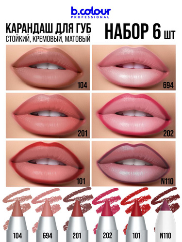B.COLOUR PROFESSIONAL Карандаш для губ, набор 6 штук CAPSULE
