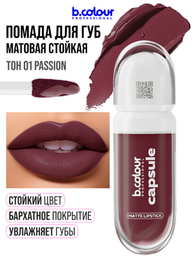 B.COLOUR PROFESSIONAL Помада для губ матовая, бордовая, CAPSULE 01 Passion