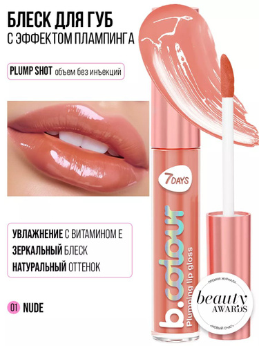 7DAYS Блеск для губ розовый увлажняющий, бальзам 01 Nude