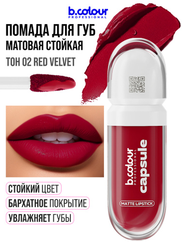 B.COLOUR PROFESSIONAL Помада для губ красная матовая стойкая, CAPSULE 02 Red Velvet