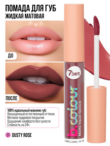 7DAYS Помада для губ матовая стойкая жидкая 01 DUSTY ROSE