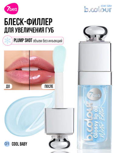 7DAYS Блеск для губ прозрачный, масло охлаждающее, увлажняющее