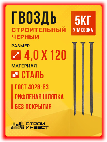 Гвозди строительные черные 4 х 120 мм, упаковка 5 кг