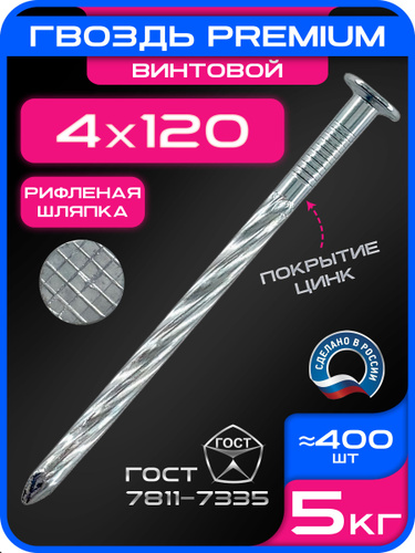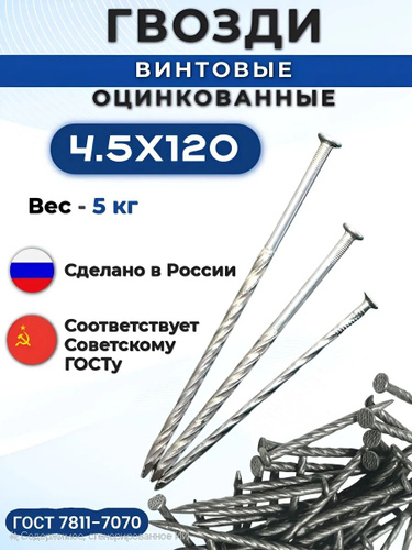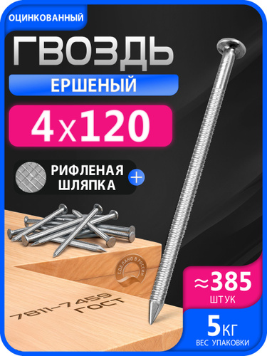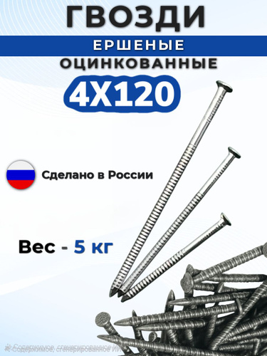 Гвозди ершеные 120мм Х 4 мм. оцинкованные 5кг.