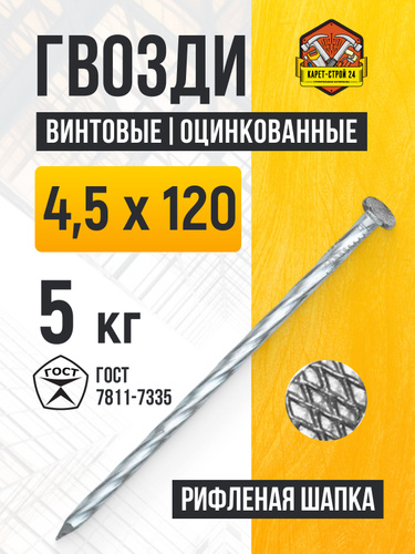 Гвозди винтовые 4.5 х 120 мм оцинкованные (5 кг.)