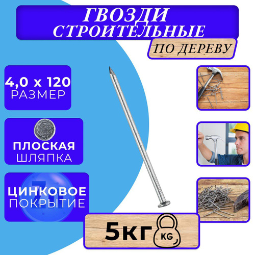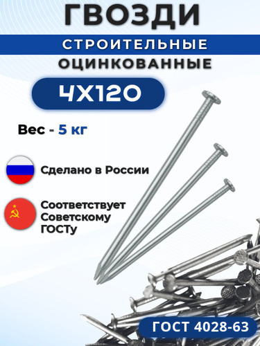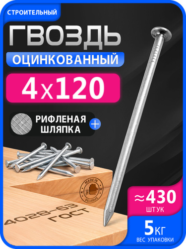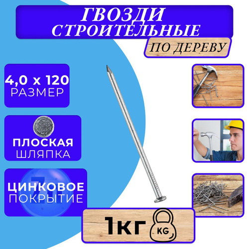 Гвозди 120мм 1кг строительные оцинкованные 4х120мм