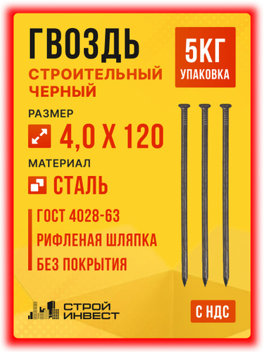 Гвозди строительные черные 4 х 120 мм ( упаковка 5 кг )