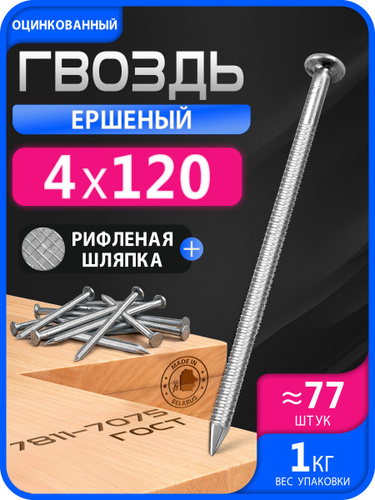 Гвозди ершеные 120мм 1кг строительные оцинкованные 4х120мм