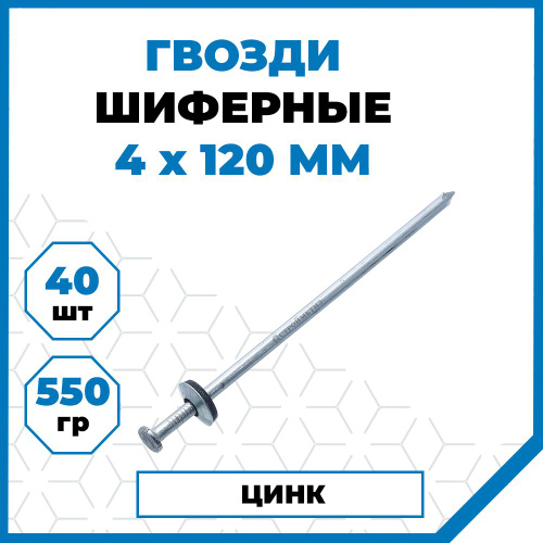 Гвозди Стройметиз шиферные 4х120, сталь, покрытие - цинк, 40 шт.