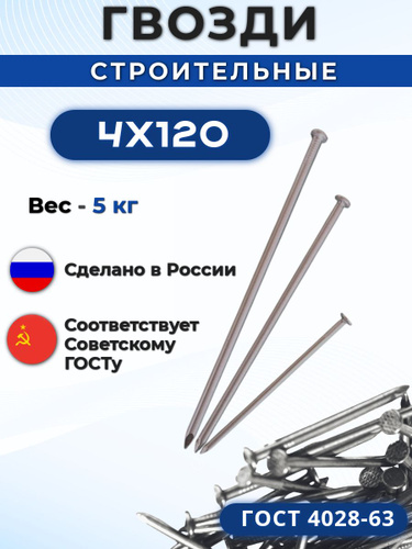 Гвозди строительные 4 х 120 мм 5 кг Россия ГОСТ 4028-63
