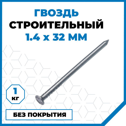 Гвозди Стройметиз строительные 1.4х32, без покрытия, 1 кг (2597 шт.)