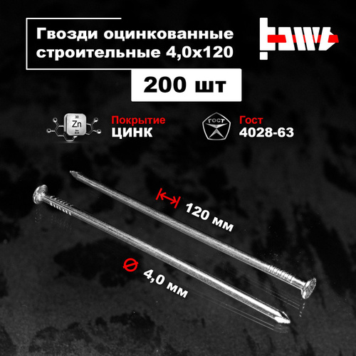 Гвозди строительные оцинкованные 4,0х120 200 шт