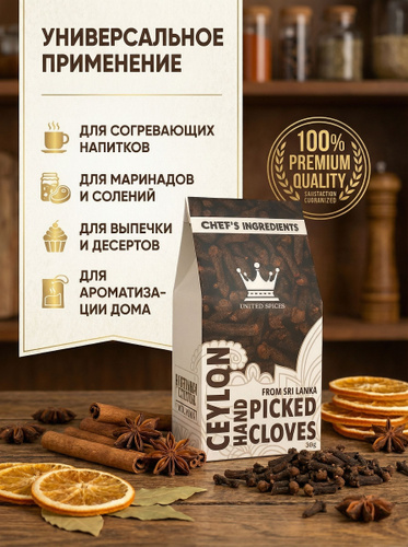 United Spices Гвоздика Целая, 30 гр, Без примесей и добавок HAND PICKED, Шри-Ланка