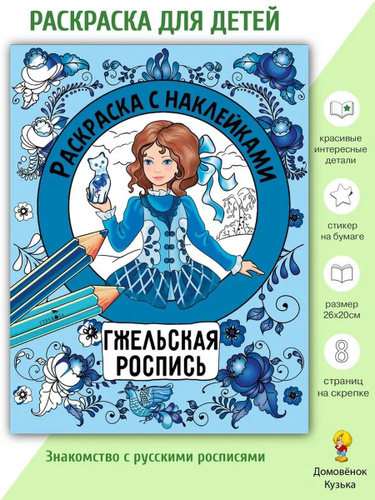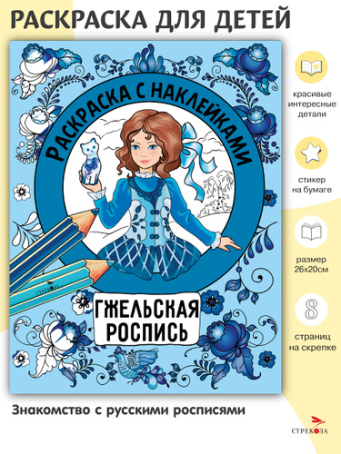 Раскраска с наклейками. Росписи. Гжельская роспись | Терентьева Наталья