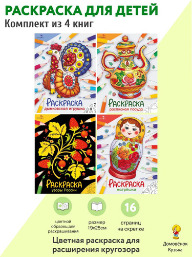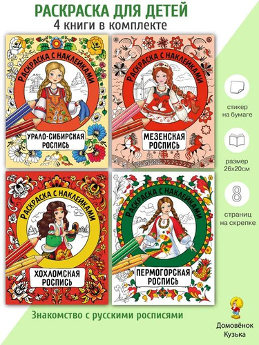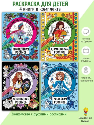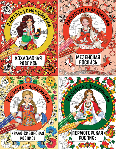 Раскраска с наклейками. Росписи (комплект из 4-х кн.)
