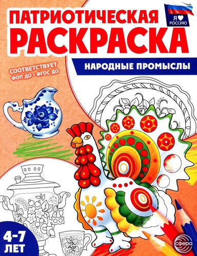 Патриотическая раскраска. Я люблю Россию. Народные промыслы. 4-7 лет. ФГОС ДО. ФОП ДО | Цветкова Татьяна Владиславовна
