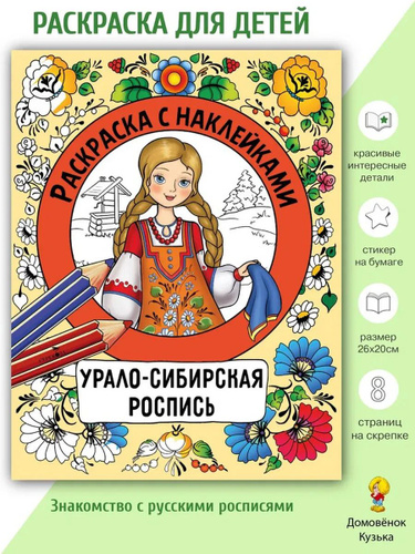 Раскраска с наклейками. Росписи: Урало-сибирская, Мезенская, Хохлома, Пермогорская | Терентьева Н. А.