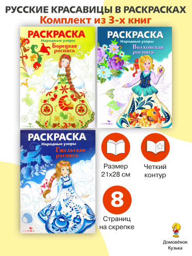 Раскраски: Борецкая, Волховская, Гжельская роспись