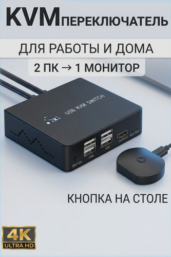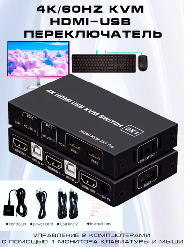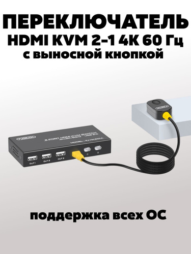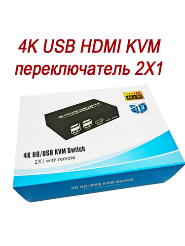 4K USB HDMI KVM Switch свитч, переключатель квм 2-1 свитчер модель 2023 года с выносной кнопкой